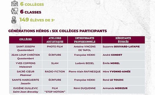 Fort du succès de ses deux premières éditions, Générations Héros repart pour une nouvelle année placée sous le signe de la mémoire et de la transmission. Depuis deux ans, ce projet fédère les collégiens du Morbihan autour d’un même objectif : faire vivre la mémoire des combattants et leur redonner un visage, une histoire, une voix.