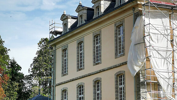 Le sous-sol du château souffre d’une humidité importante liée au mauvais écoulement des eaux de pluie, d’un manque de ventilation et de l’absence de chauffage. Les sanitaires situés à cet endroit étaient vétustes. L’enduit de la façade a été refait, et les vasistas du sous-sol ont été entièrement restaurés.