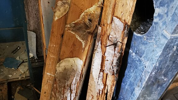 Des sondages et des prélèvements analysés en laboratoire ont permis de repérer les zones attaquées par le mérule. Ce champignon s’attaque aux structures en bois et les rend fragiles, il peut également se développer dans les maçonneries.